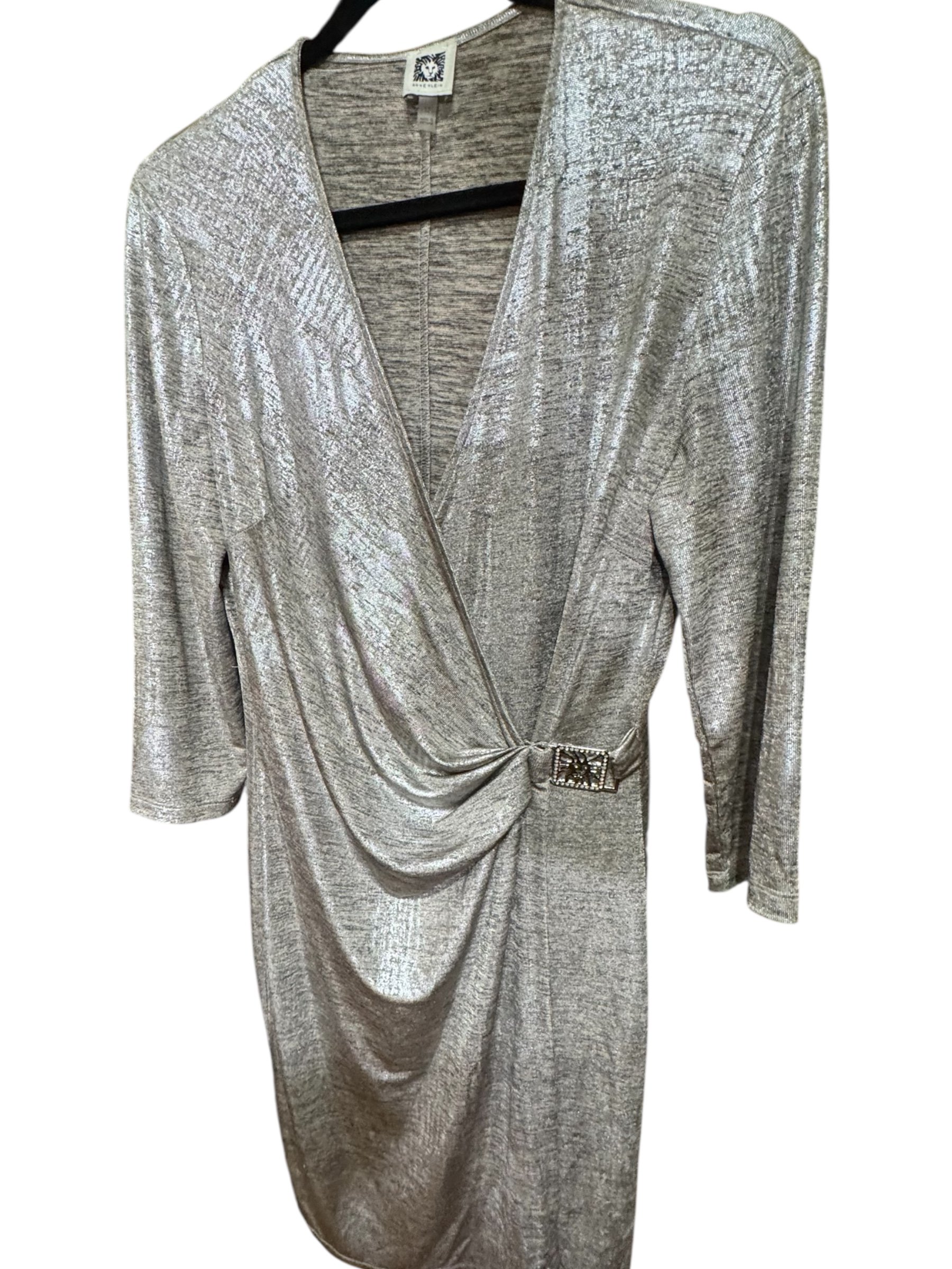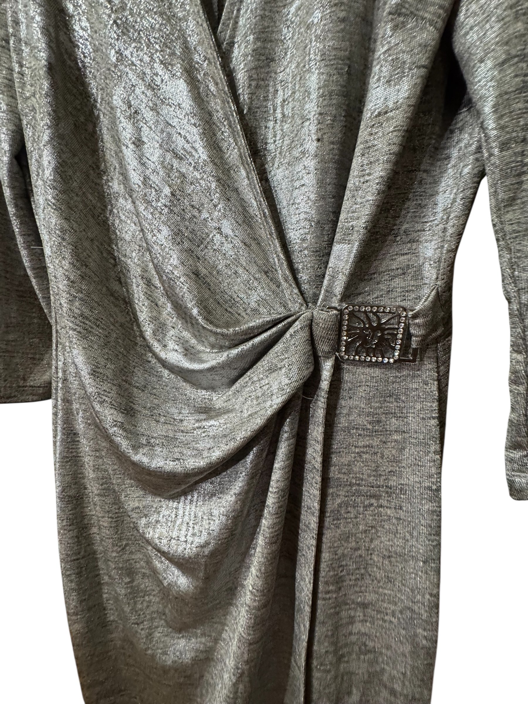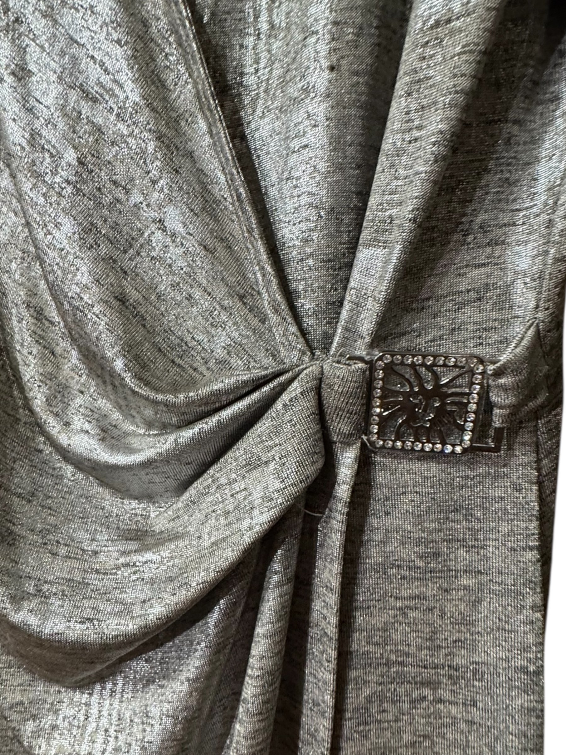 SILVER DRESS KNEE HIGHT. NICE METAL DETAIL.