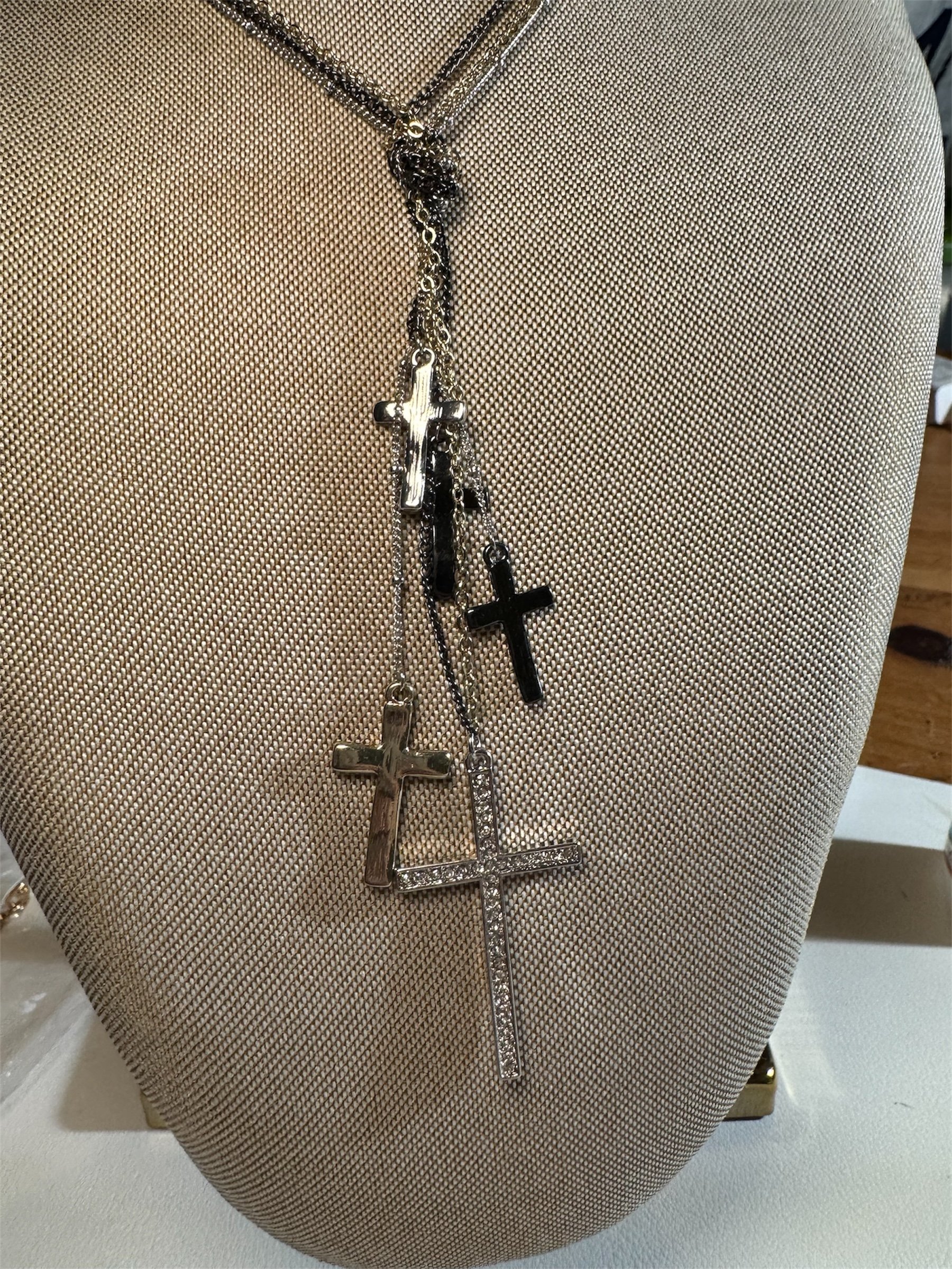 Five crucifix long chain necklace.