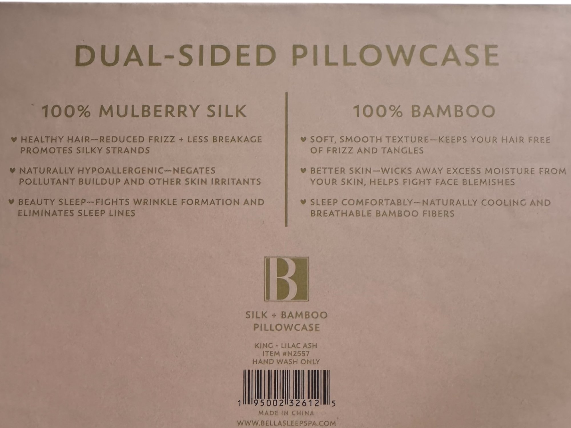 This amazing pillow case really works. Your hair and skin are going to go to an tremendous change after you start using it. One side is made of 100% Mulberry Silk and the other is Made of the cooling feeling of 100% Bamboo.