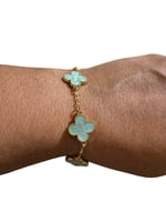 Cutie bracelet 7" long. With ceramic flowers. Plated Gold.