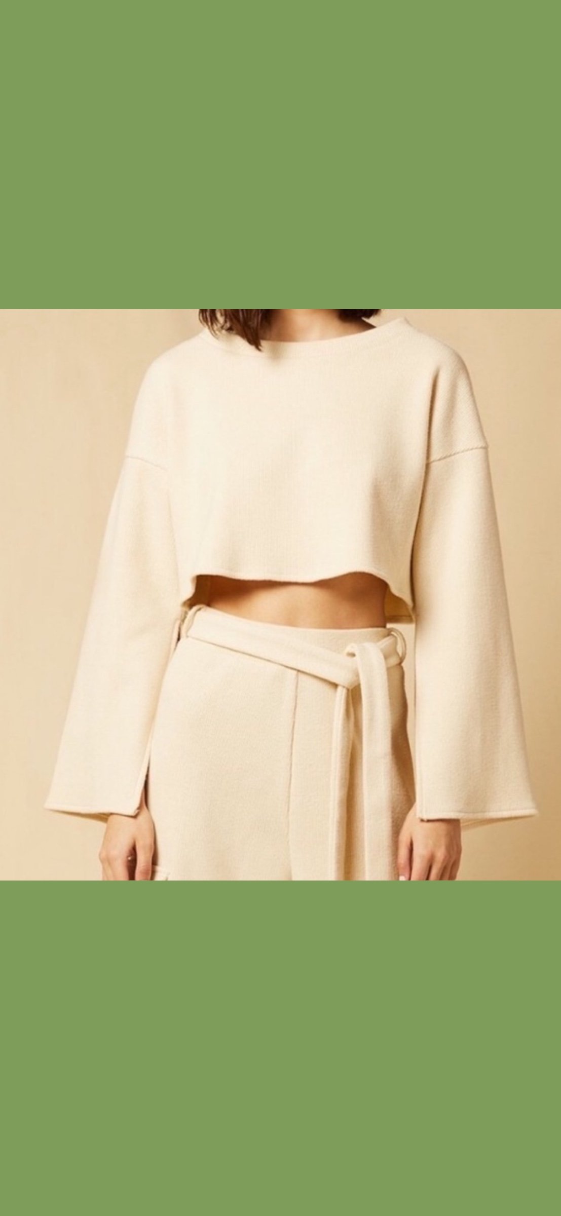 Elsa Cropped Sweatshirt Ribbed w/ 1/4 slit on arms.