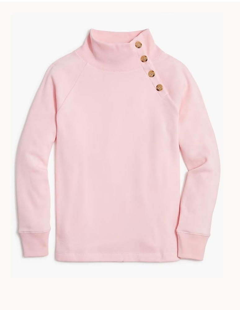 PINK J CREW WIDE BUTTON WIDE- COLLAR TUNIC SWEATDHIRT IN