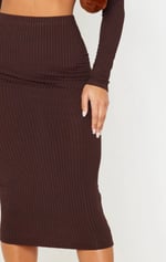 BROWN RIBBED HIGH WAIST MIDI SKIRT