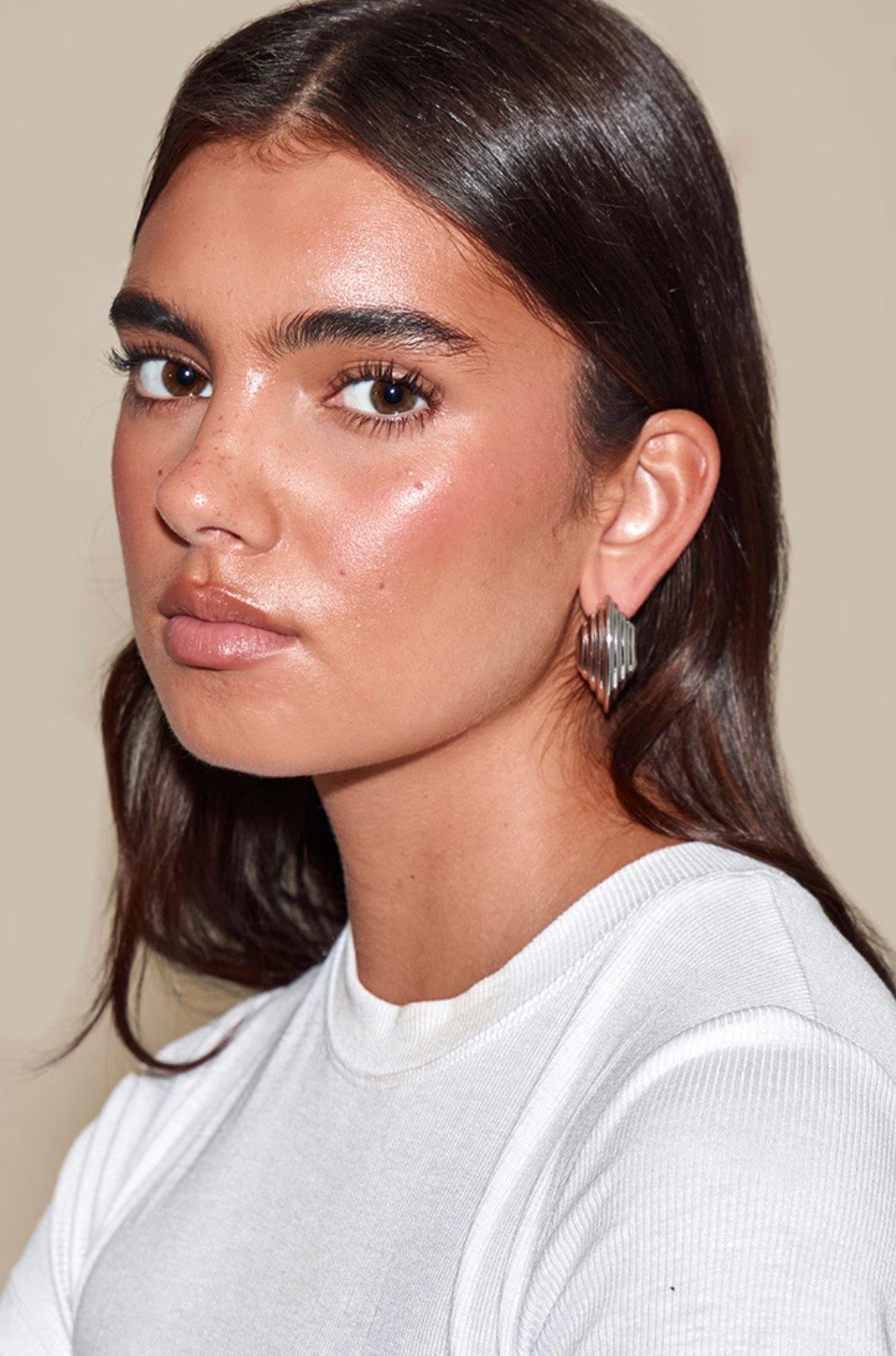 PRETTY LITTLE THING- SILVER CHUNKY RIBBED HOOP EARRINGS