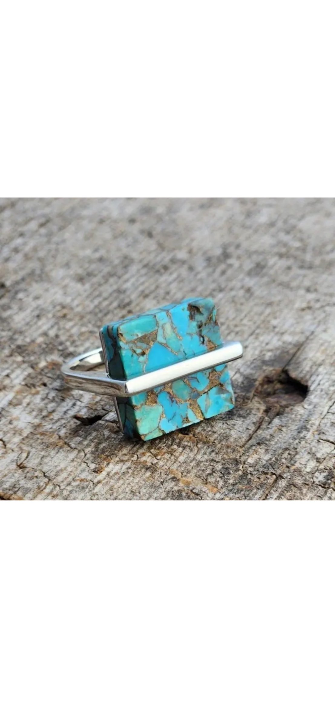 RING- VINTAGE BOHO TURQUOISE CUBE RING