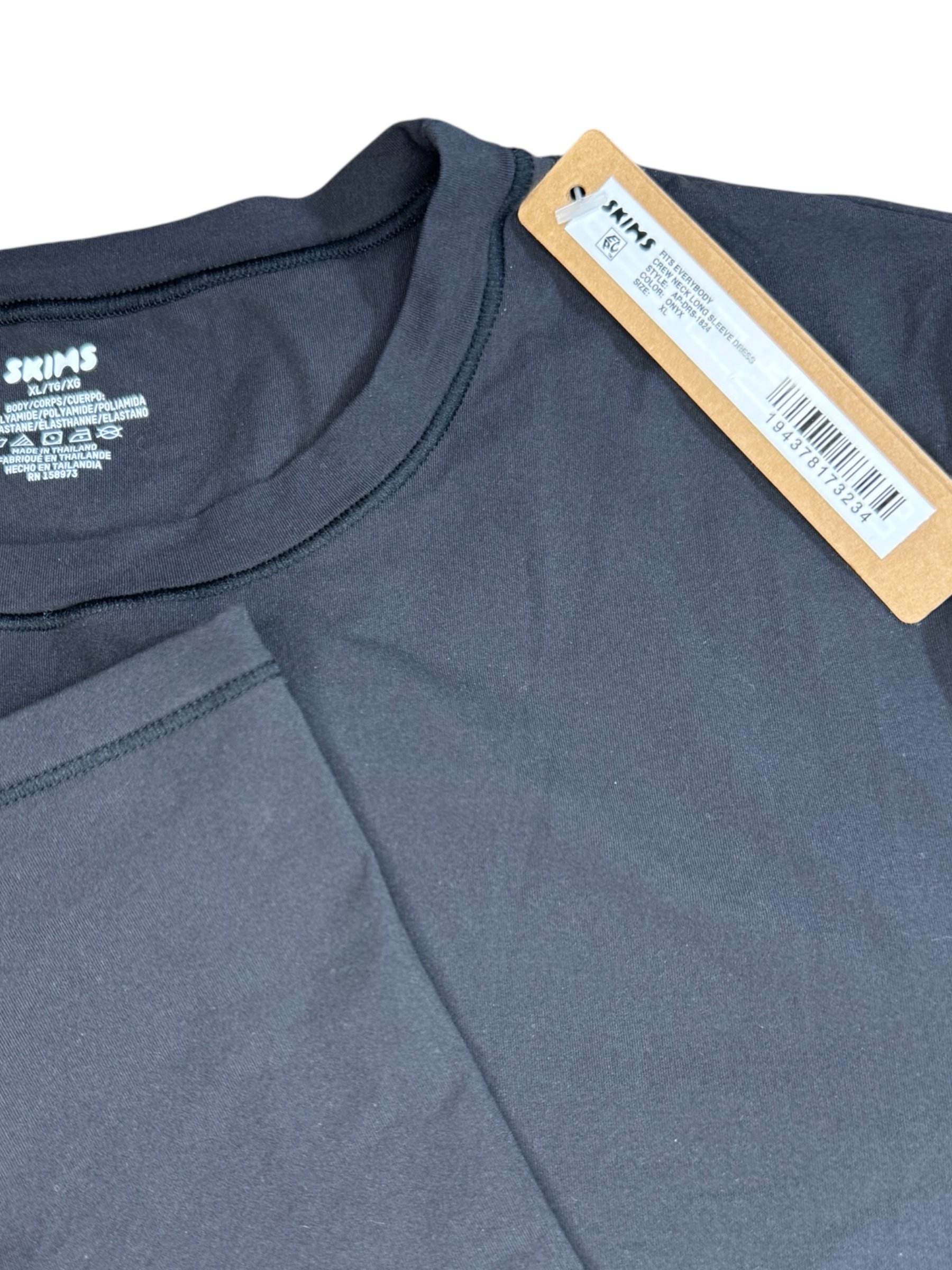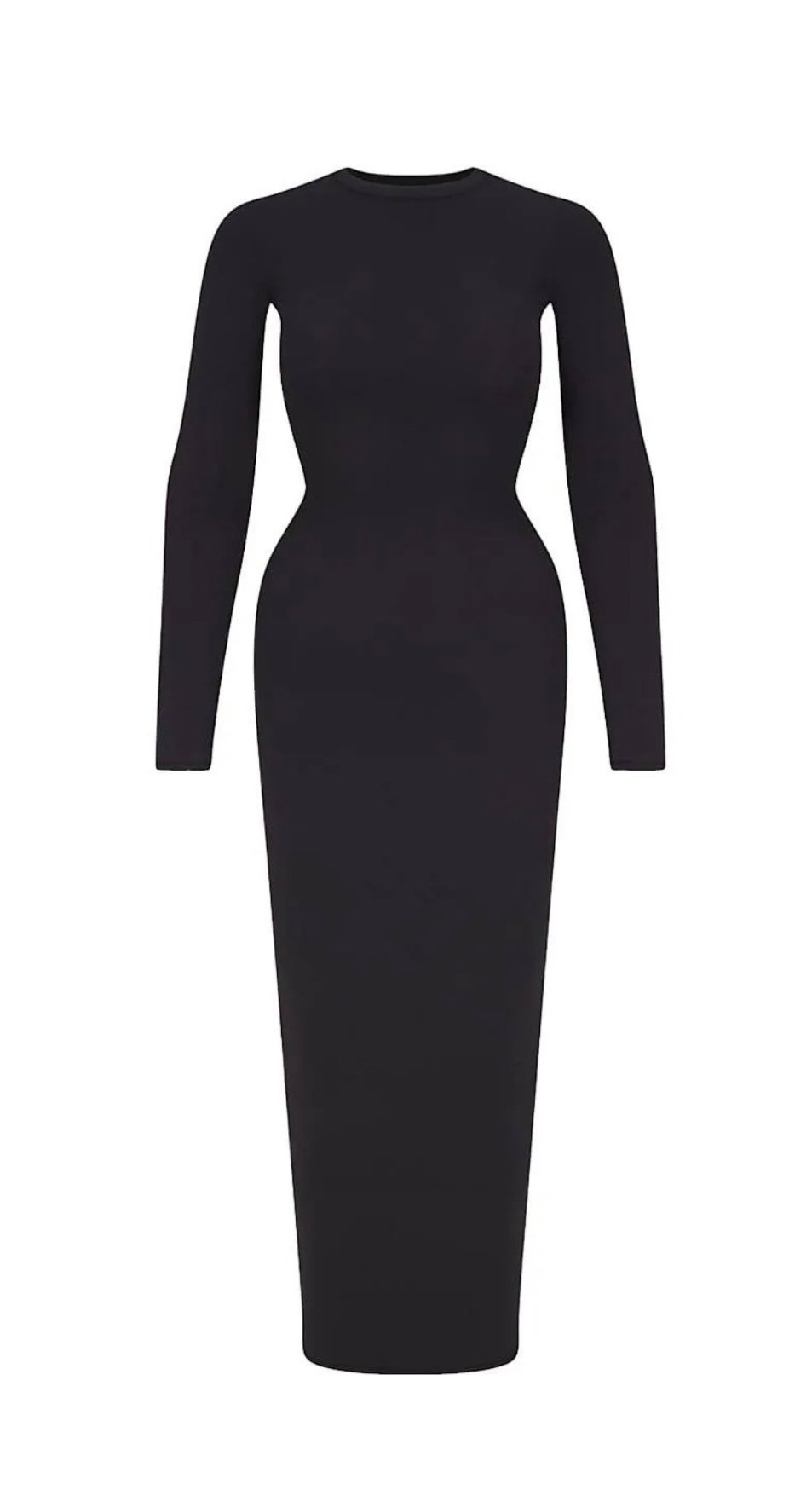 SKIMS- FITS EVERYBODY CREW NECK LONG SLEEVE LONG DRESS- ONYX