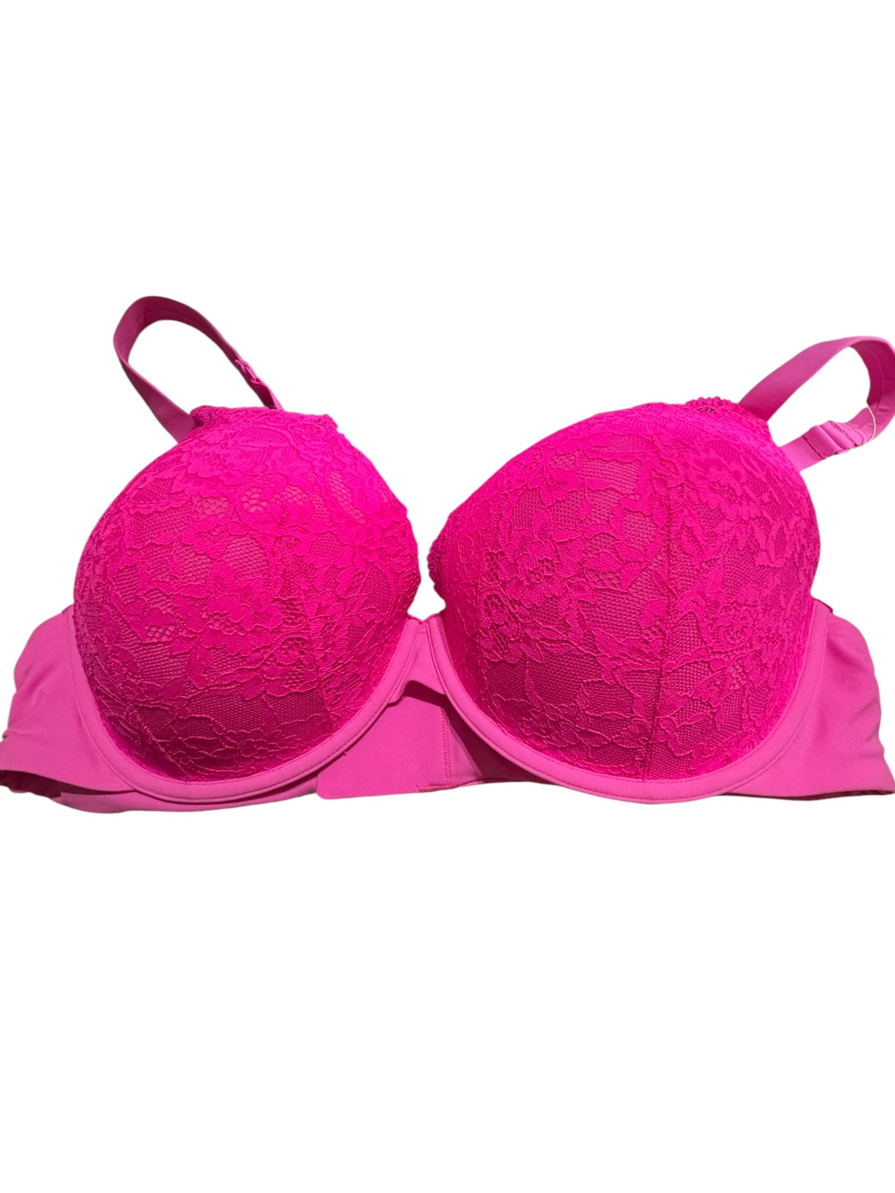 FITS EVERYBODY LACE UP DEMI BRA PUSH UP IN NEON PINK