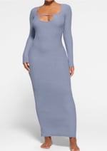 SKIMS- MAXI DRESS RIBBED LONG SLEEVE- BLUE