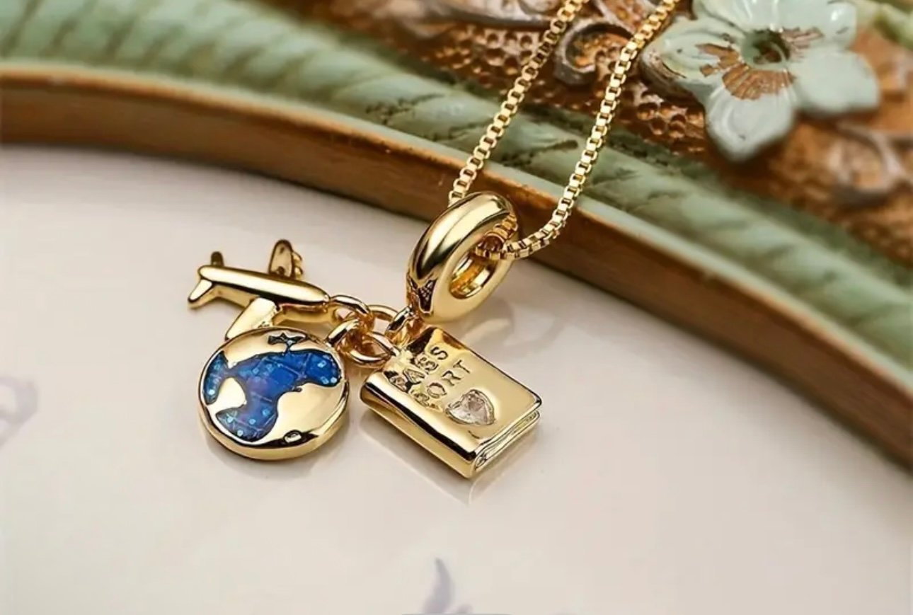 TRAVEL CHARM GOLD PLATED. DESIGNED FOR "PANDORA LIKE BRACELET".